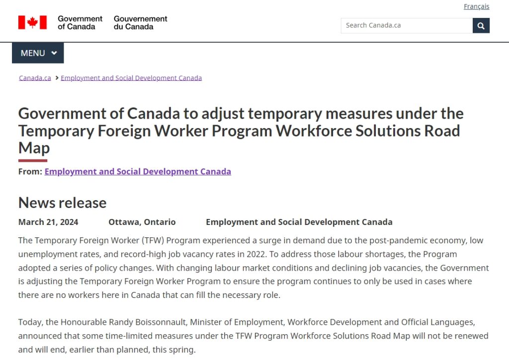 今日,即当地时间3月21日,就业、劳动力发展和官方语言部长兰迪·布瓦松诺宣布,临时外劳计划在2022年启动的利好措施中部分措施将不再延期,并将于今年春季提前结束。
