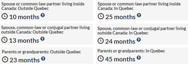 1. 境内配偶团聚移民(魁省以外):10个月(与两周前一致)