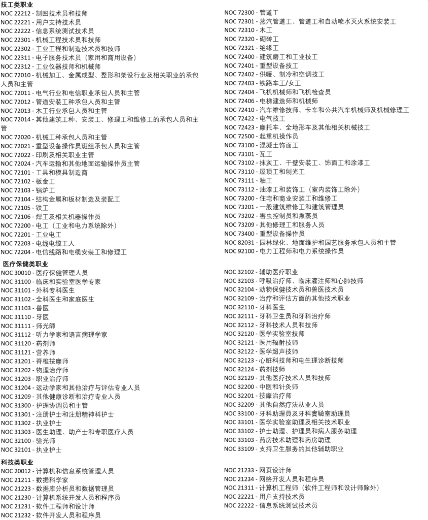 • 过去两年内,在安省有至少累计1年的技工类别职位全职(或等同于全职的兼职)工作经验,符合要求的技工类别职业包括: