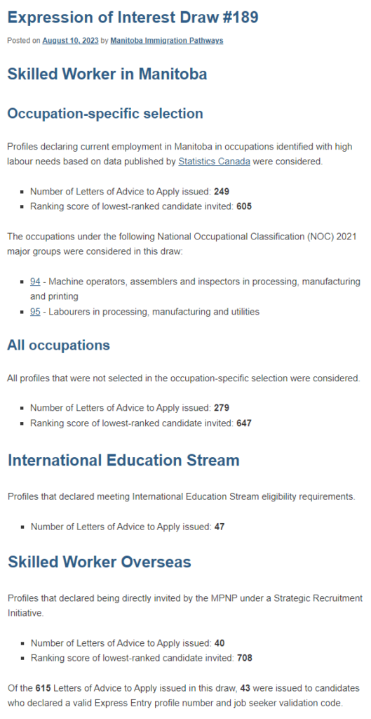 当地时间8月10日,MPNP进行了最新一轮曼省省内技术工人类别、海外技术工人类别和国际留学生类别邀请。具体受邀情况如下: