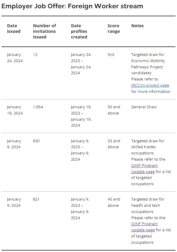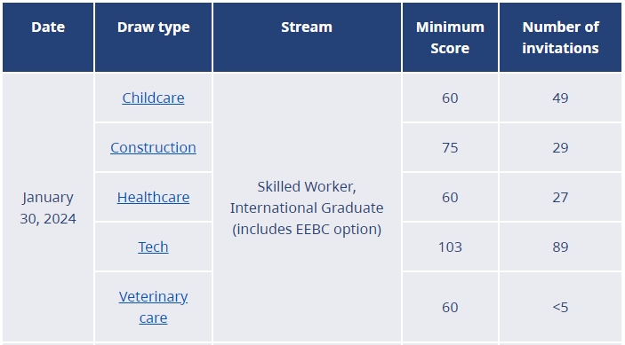 当地时间1月30日,BCPNP进行了一轮抽签,具体邀请情况如下: