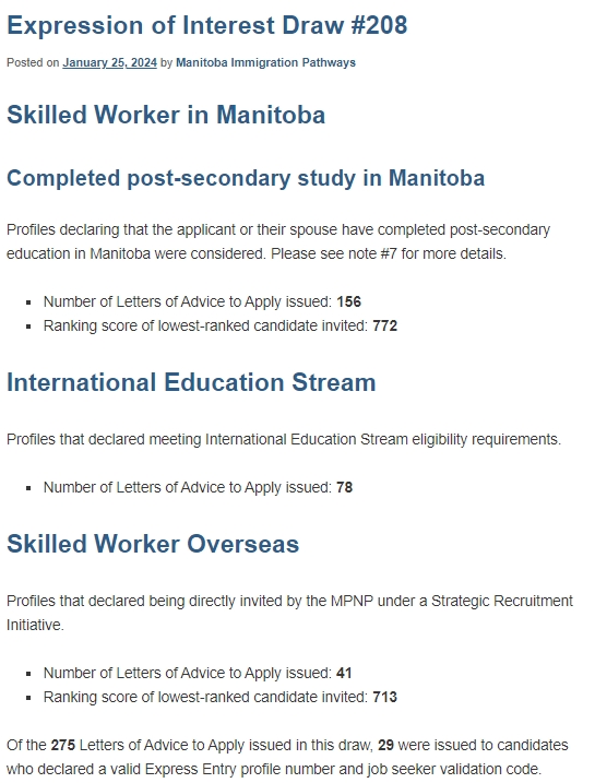 当地时间1月25日,MPNP进行了最新一轮曼省省内技术工人类别、海外技术工人类别和国际留学生类别邀请。具体受邀情况如下: