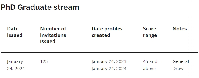 - 博士毕业生类别:最低邀请分数45分,邀请125人