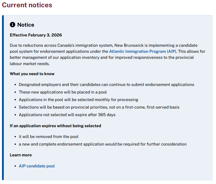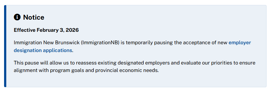 纽省政府官方公告链接:https://www2.gnb.ca/content/gnb/en/corporate/promo/immigration/notice.html#:~:text=Effective%20February%203%2C%202026,Effective%20February%203%2C%202026