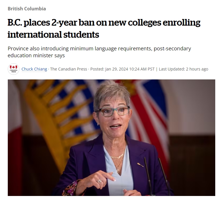- BC省颁布2年禁令:禁止新的高等院校招收留学生