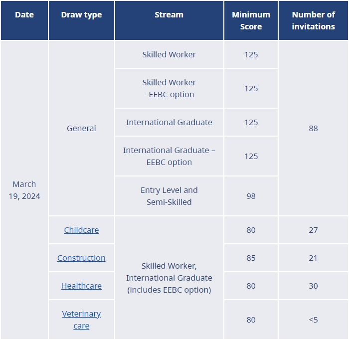 当地时间3月19日,BCPNP进行了最新一轮抽签。具体邀请情况如下:
