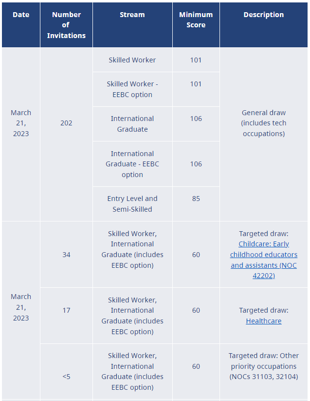 当地时间3月21日,BCPNP进行了最新一轮抽签,常规类别邀请了202人!