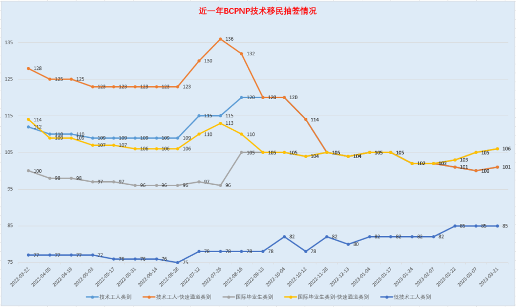 BCPNP常规项目分数走势:​