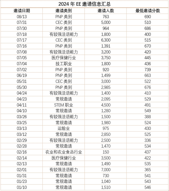今日,EE快速通道移民项目进行了最新一轮邀请。本轮仅邀请了获得省提名(PNP)加分的候选人,共发放763份邀请,最低邀请分数为690分!