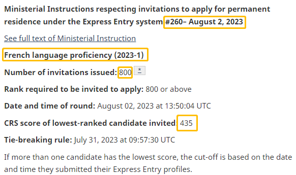 当地时间8月2日,加拿大EE快速通道移民项目进行了最新一轮的邀请。本轮邀请为法语类别定向邀请,最低分数线为435分,共邀请800人。