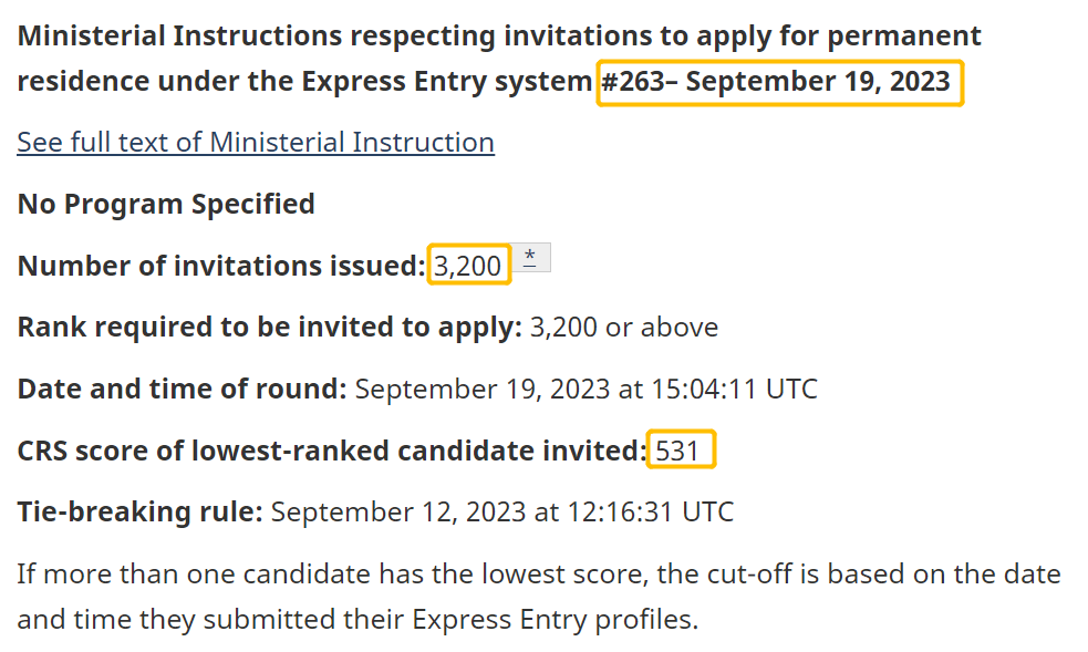 当地时间9月19日,加拿大EE快速通道移民项目进行了最新一轮邀请。本轮邀请为全类别邀请,最低分数线为531分,共邀请3200人。