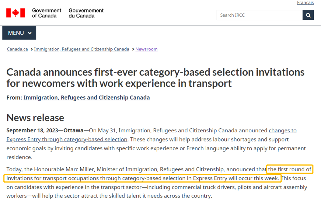 另外,移民局宣布本周将进行首轮运输业职业定向邀请!