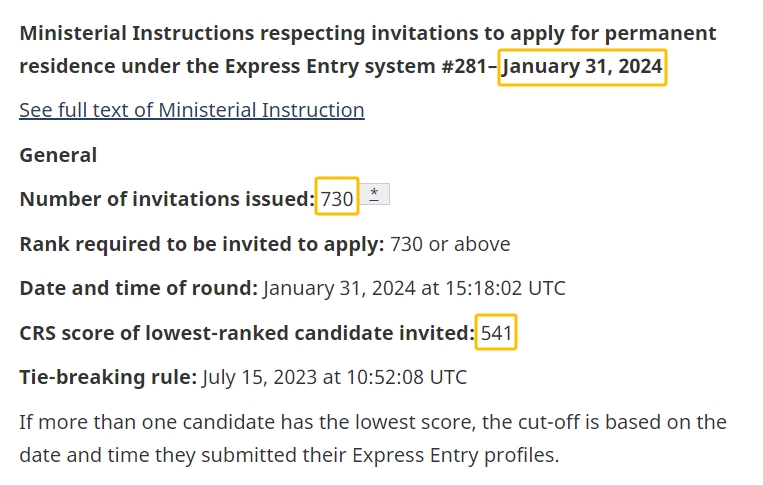 当地时间1月31日,加拿大EE快速通道移民项目进行本年度第三轮邀请。具体情况如下: