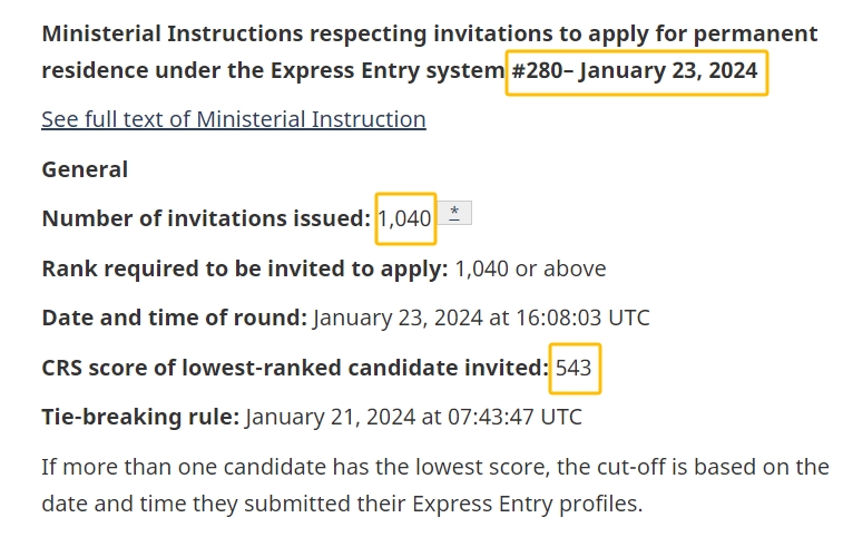 当地时间1月23日,加拿大EE快速通道移民项目进行本年度第二轮邀请。具体情况如下:
