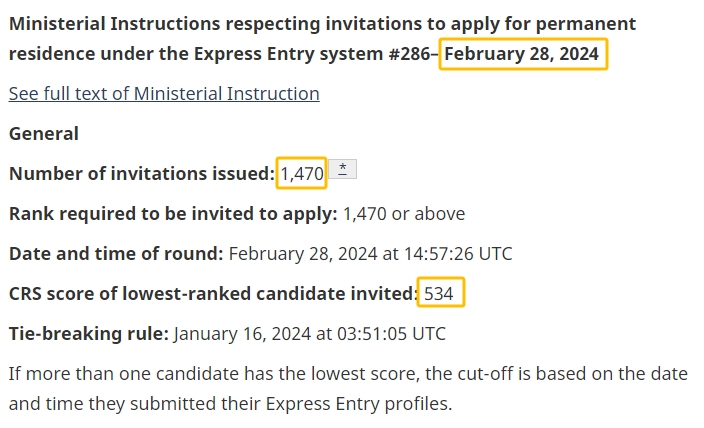 当地时间2月28日,加拿大EE快速通道移民项目进行最新一轮邀请。具体情况如下: