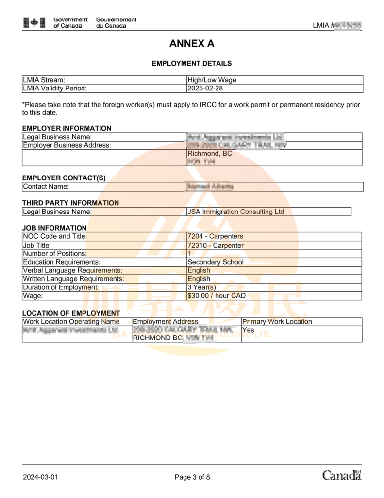 LMIA – High Wage Stream