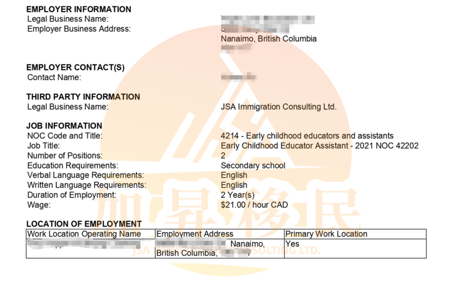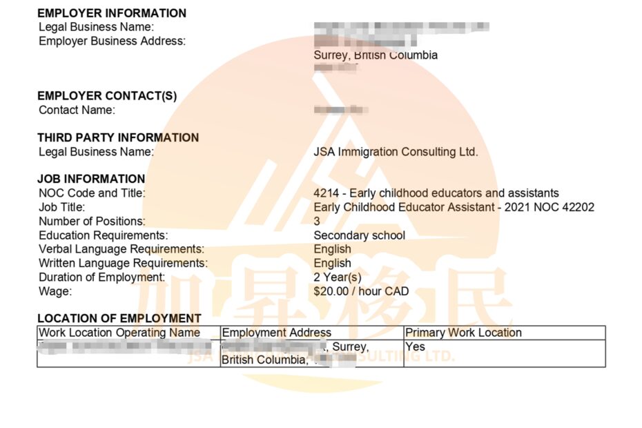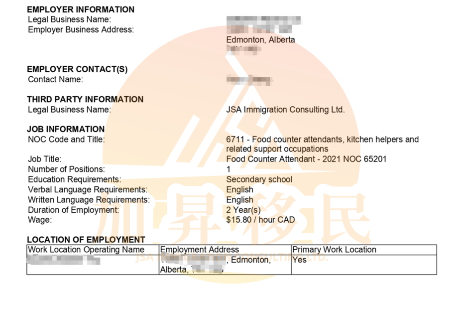 LMIA – Low Wage Stream